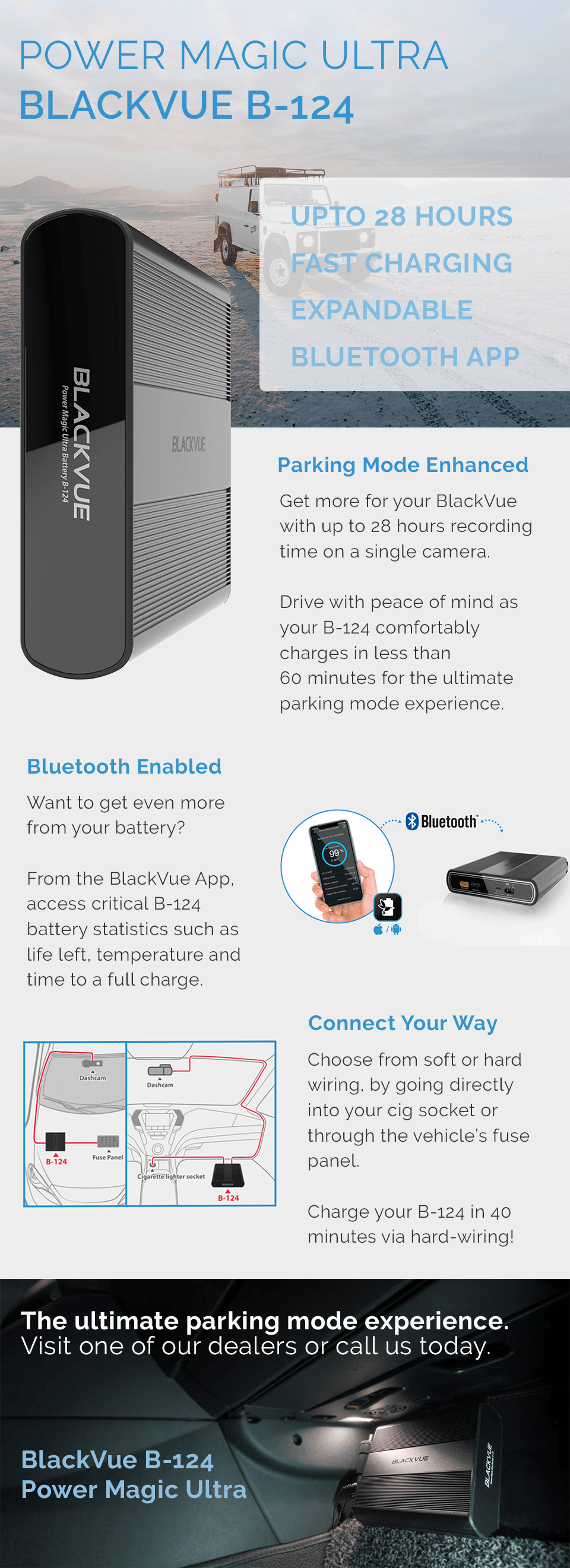 By installing the B-124, you can ensure your batteries health is maintained, while also having the benefit of running your dash cam in parking mode for extended periods of time.