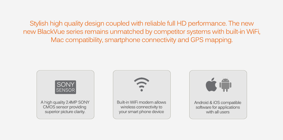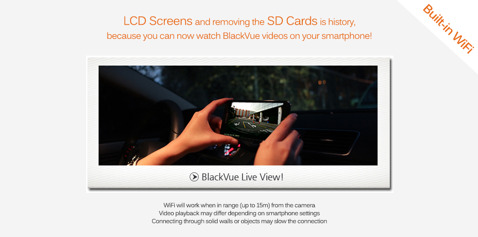 The BlackVue App is free to download for all customers and works on both iOS and Android devices. The camera can connect to your smartphone or tablet device using the App and once connected, the user can download footage, watch a live view of the camera, change user settings and more.
